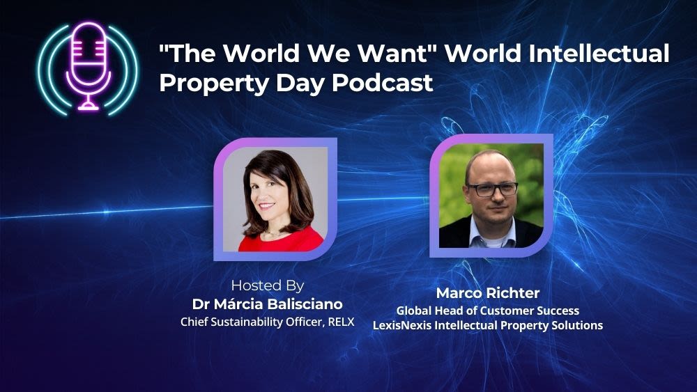 In a special episode of the "World We Want" podcast series, RELX's Chief Sustainability Officer and Global Head of ESG, Dr Márcia Balisciano is joined by Marco Richter, Head of Global Customer Success and the Managing Director for LexisNexis PatentSight. They discuss how businesses and policymakers can leverage intellectual property (IP) frameworks to promote environment-friendly technologies and practices.