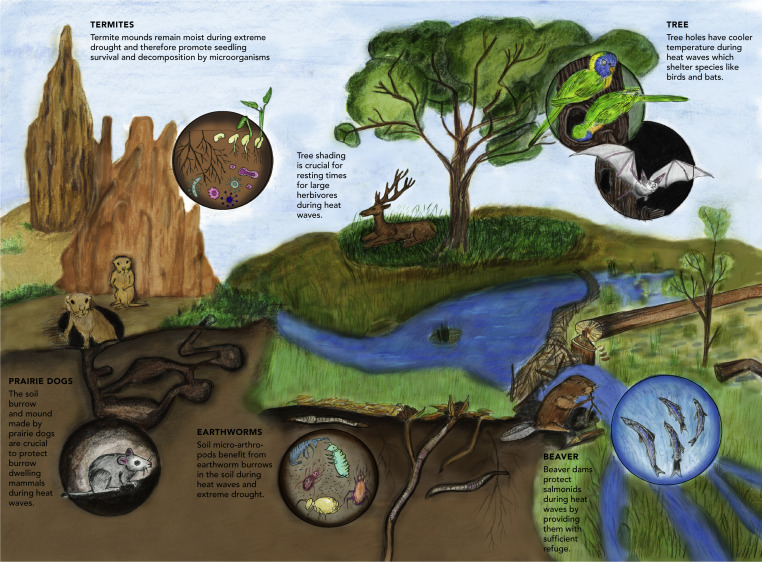 Climate extremes are expected to become more commonplace and more severe, putting species and ecosystems at unprecedented risks. We recommend that rewilding programs can create conditions for ecosystems to endure and recover rapidly from climate extremes by incorporating ecosystem engineers of various body sizes and life forms.